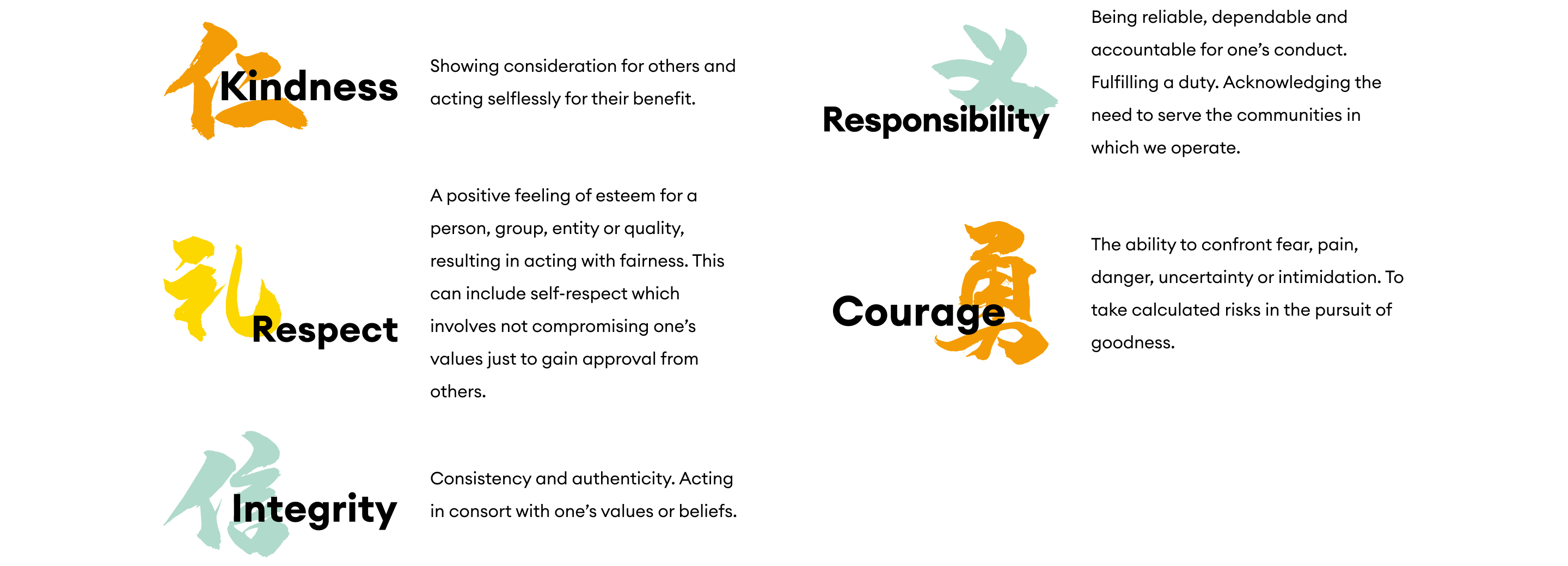 The five core values of being a Wellingtonian are: Kindness, Responsibility, Respect, Courage and Integrity.