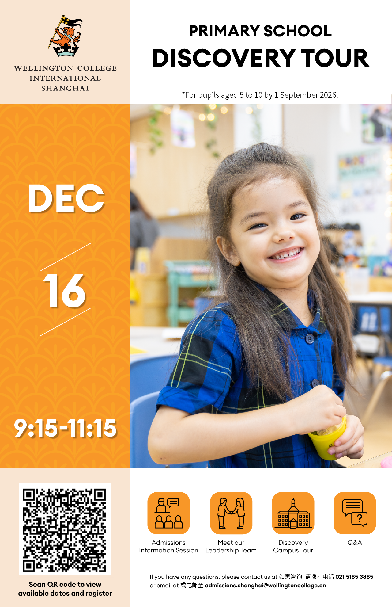 admissions.shanghai@wellingtoncollege.cn.If you’re interested in our international primary school in Shanghai, please click here and fill in the enquiry form.